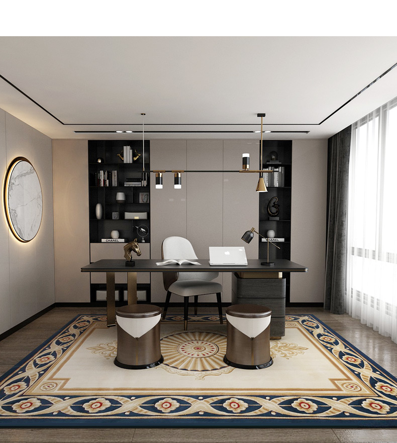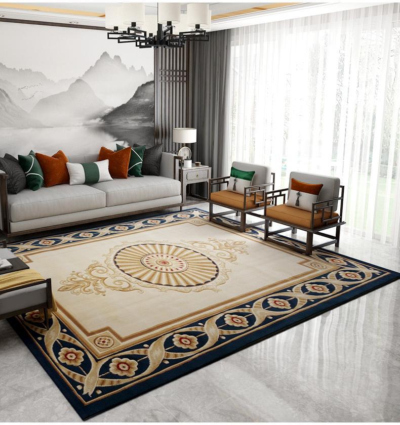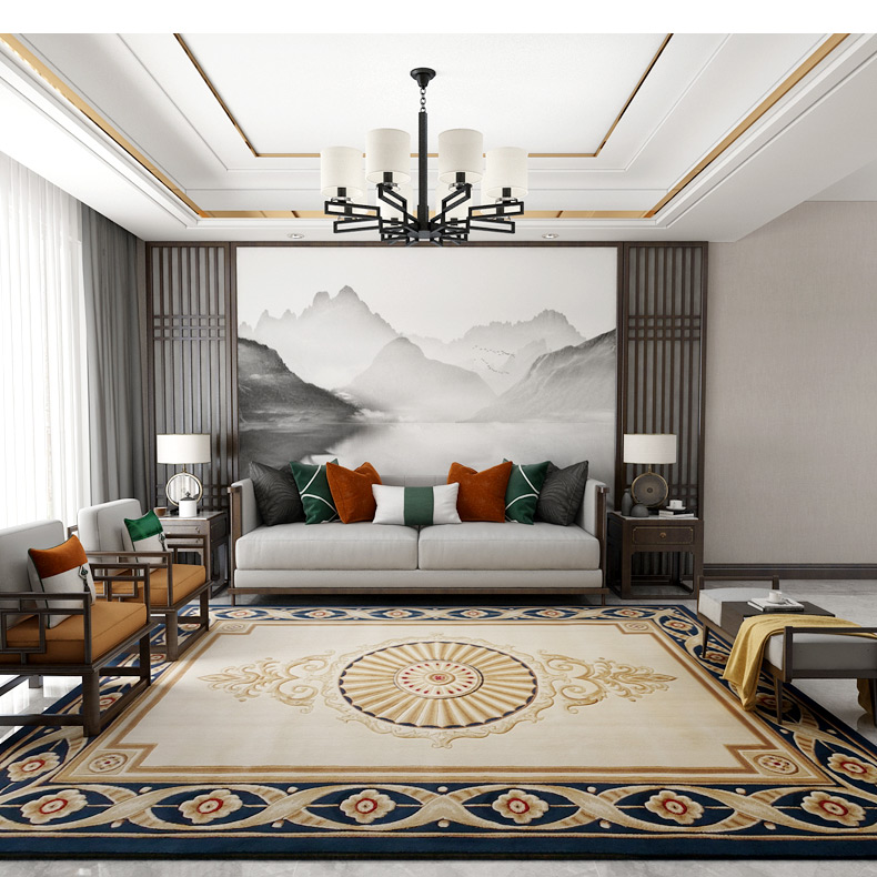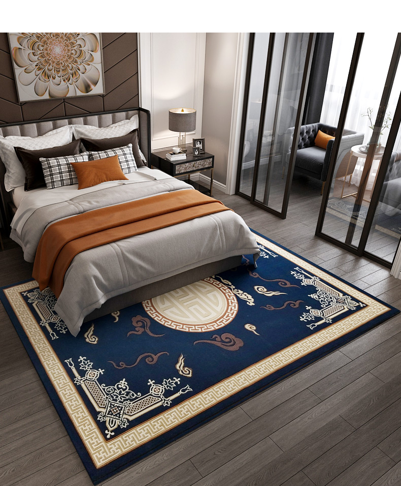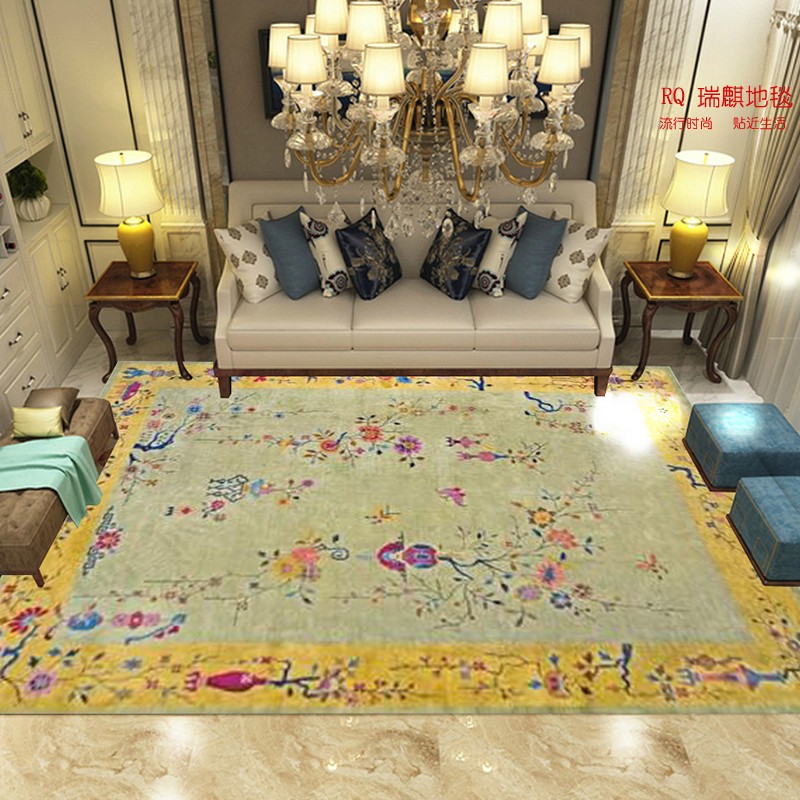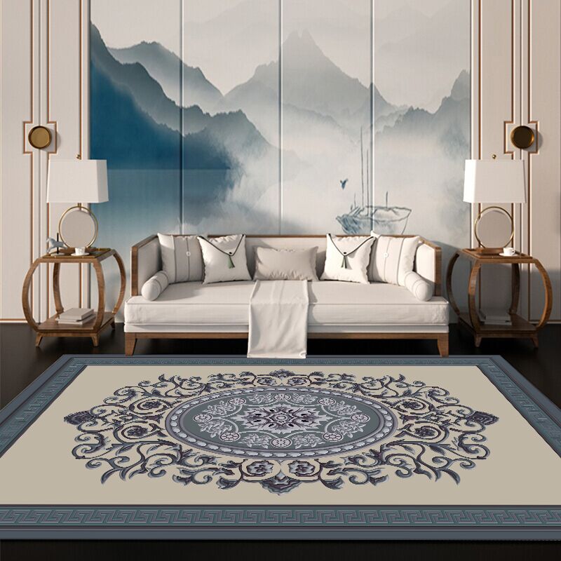 中國地毯花紋主要常用樣式有團花紋樣、卷草紋樣、云紋樣?;匦图y樣、荷花、梅蘭竹菊紋樣等。