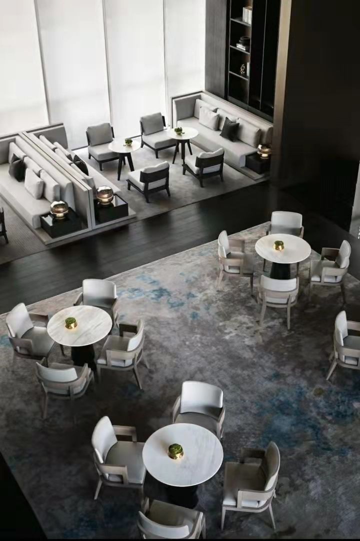 售樓處大廳和酒店大堂 是供客人休息及商務(wù)會(huì)談的場(chǎng)所,該處的地毯根據(jù)整體裝修風(fēng)格,多以輕奢風(fēng)和新中式風(fēng)格居多,其格調(diào)是大氣、高貴、典雅、嚴(yán)肅而不失活躍,具有一定的地域文化品味。