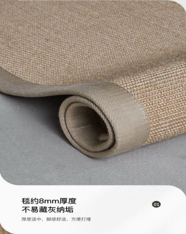 劍麻地毯是一種新型地毯,采用天然劍麻纖維編織而成,比較符合現(xiàn)代人對清新自然的追求。劍麻地毯一般有斜紋,魚骨紋,帆布平紋,多米諾紋等多種花色。劍麻地毯綠色環(huán)保,價格較羊毛、真絲地毯實(shí)惠,而且具有抗壓、耐磨、耐酸堿、吳靜電等優(yōu)點(diǎn)
